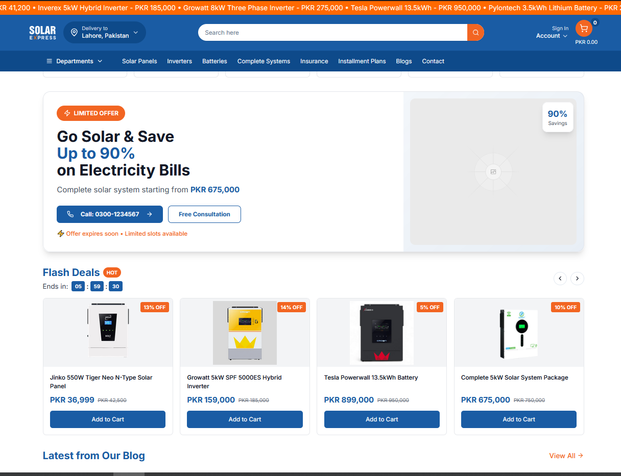 Marketplace platform for solar products, focusing on speed and clarity.