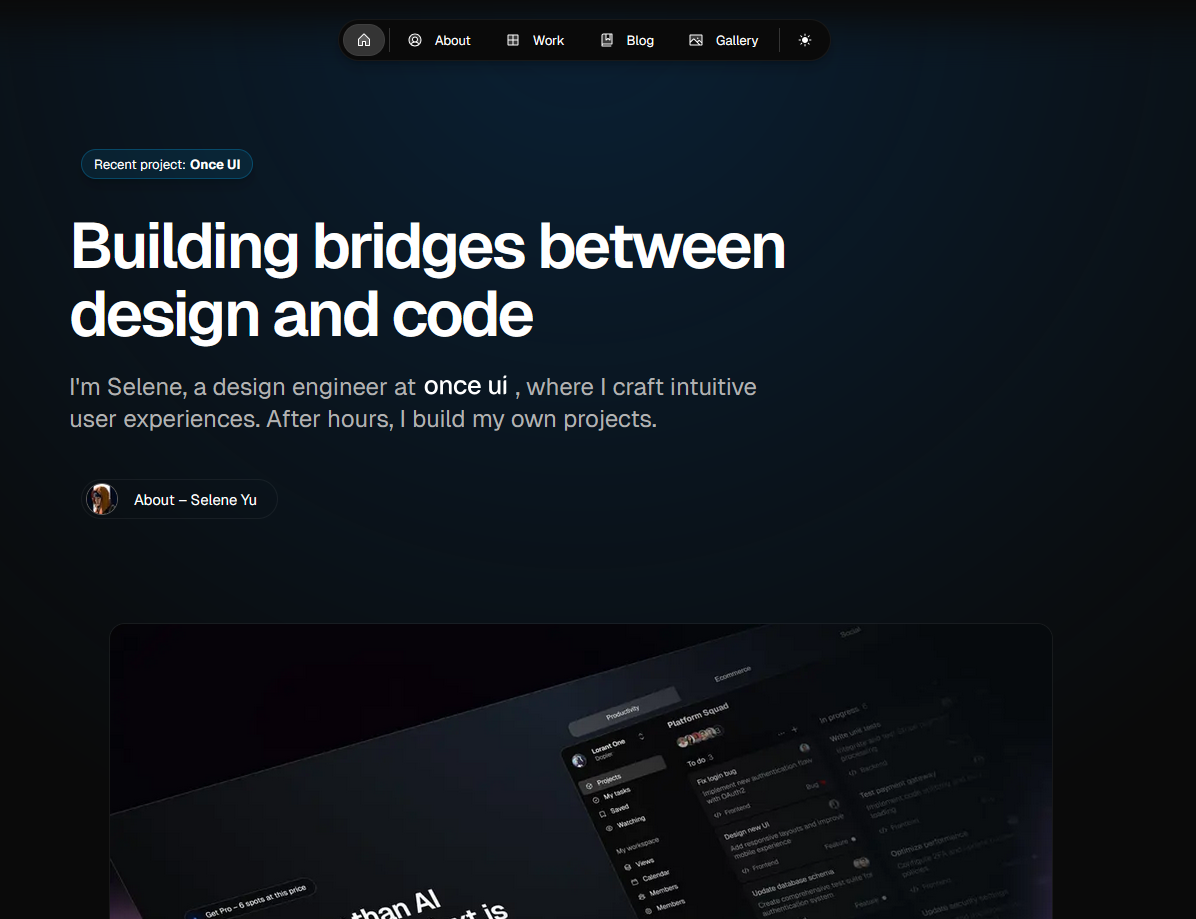 A sleek portfolio demo showcasing smooth animations and creative layouts.